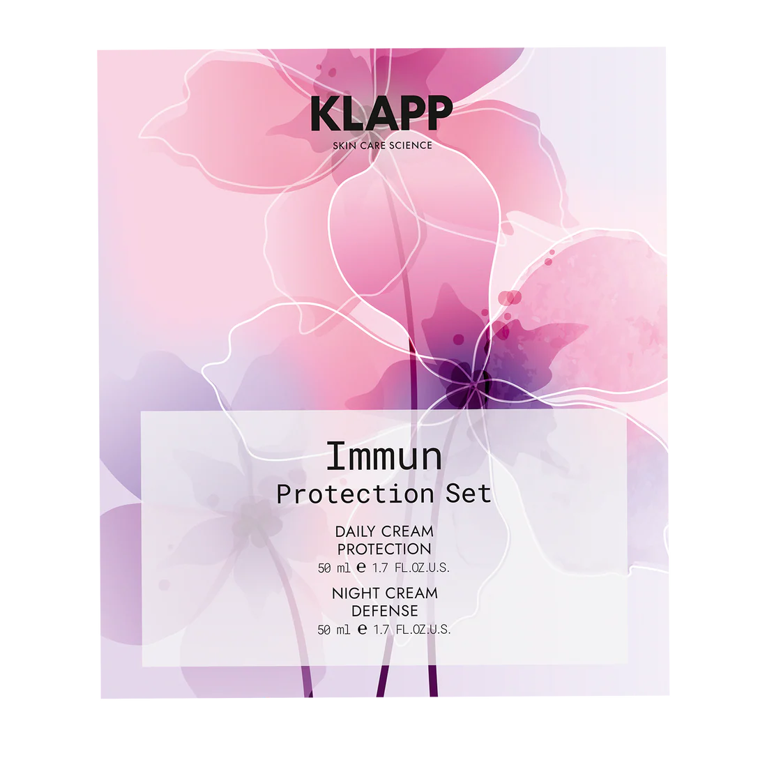 Immun Day & Night Set nabízí inteligentní 24h péči, posiluje přirozený obranný systém pleti a působí proti předčasnému stárnutí pleti. Denní krém Daily Cream Protection "ochrana" intenzivně hydratuje suchou a citlivou pokožku během dne a zajišťuje pocit vláčnosti pokožky. Night Cream Defense noční krém "obrana" podporuje regeneraci pleti v noci, udržitelně váže vlhkost a zklidňuje – pro viditelně uvolněnou a mladistvější pleť.