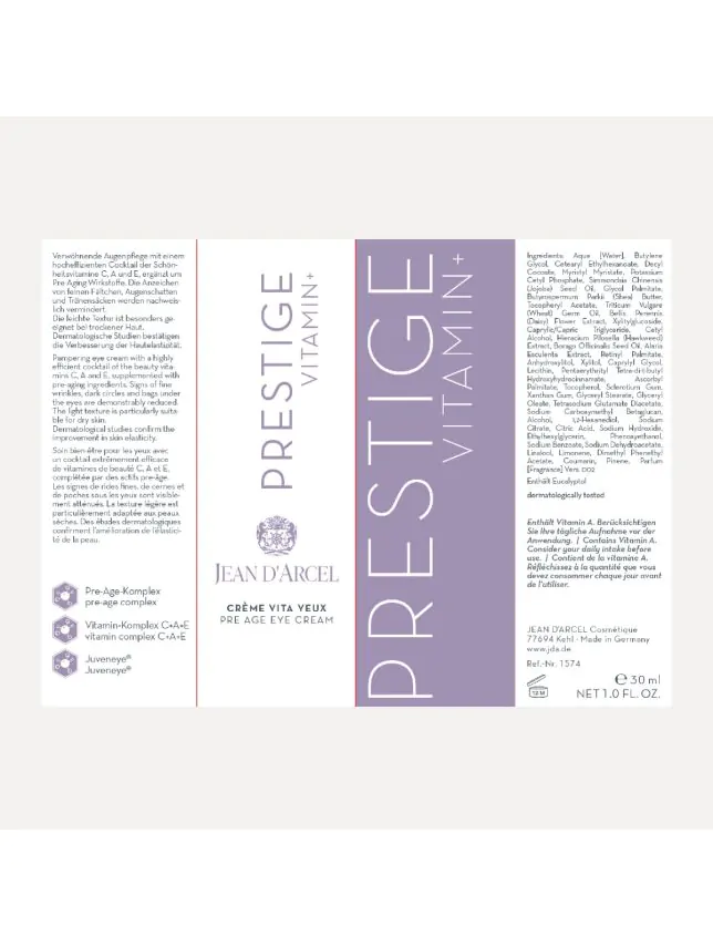 Aktivní složky: Pre-age complex, Juveneye®, komplex vitamínu C + A + E, vitamin A, vitamin E, hydrosystem AquaxylTM, beta-glukan, jojobový olej, olej z pšeničných klíčků